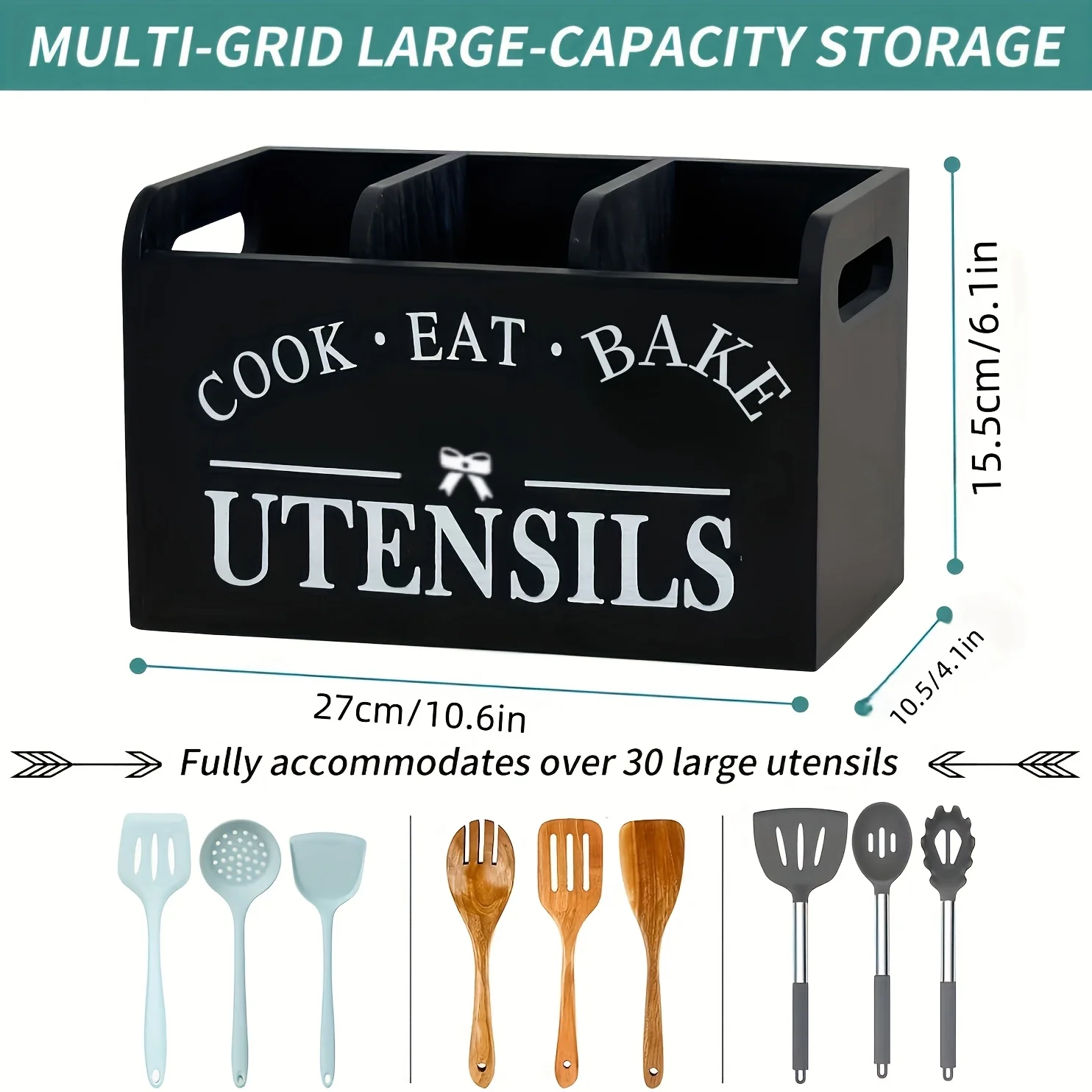 2. Versatility: This storage box can not only be used to store knives, forks, and cutlery, but also has multiple partitions to store cooking tools and small items.