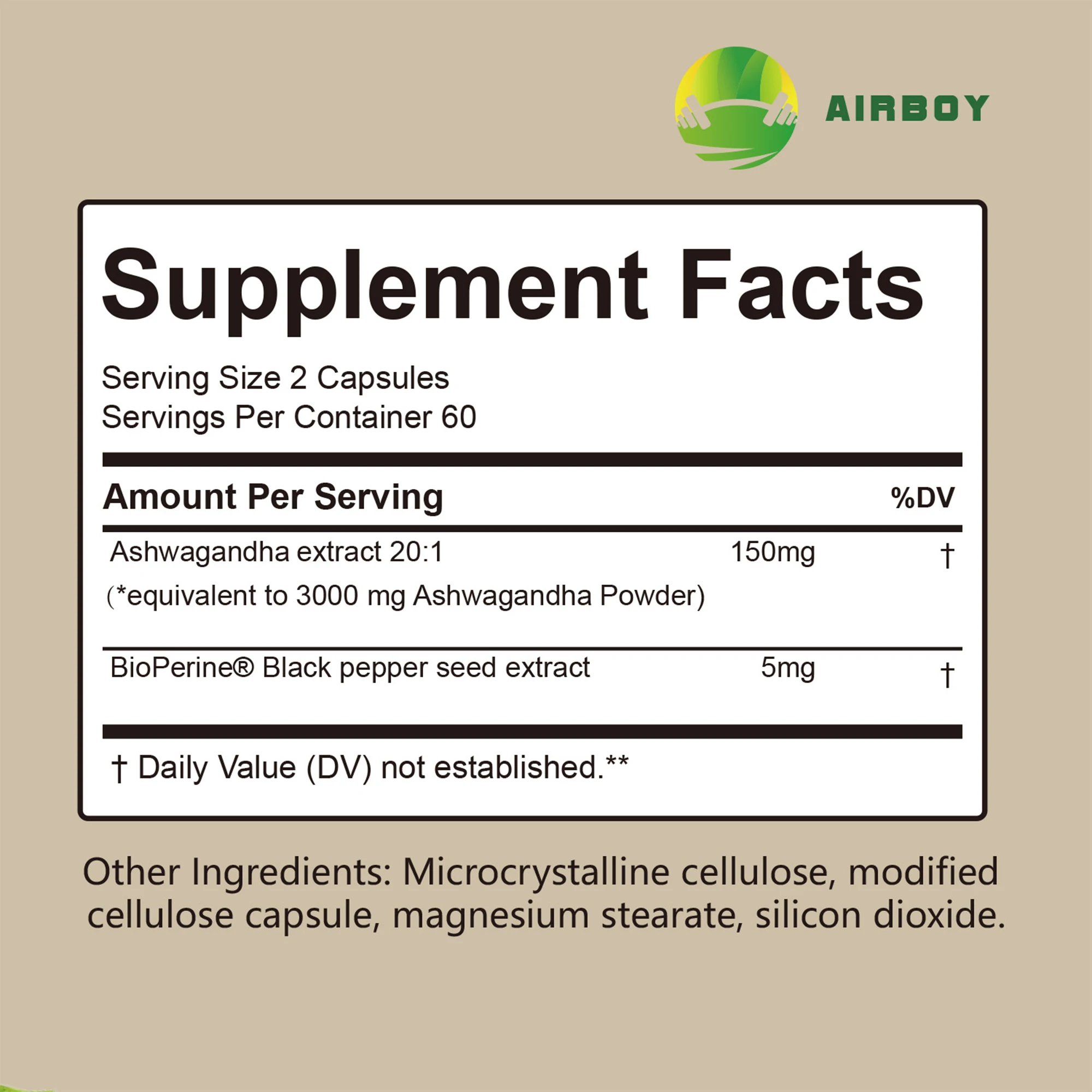 Ashwagandha Supplement - Improve Sleep Health, Relieve Stress, Focus, Boost Brain, Replenish Energy - 120 Capsules